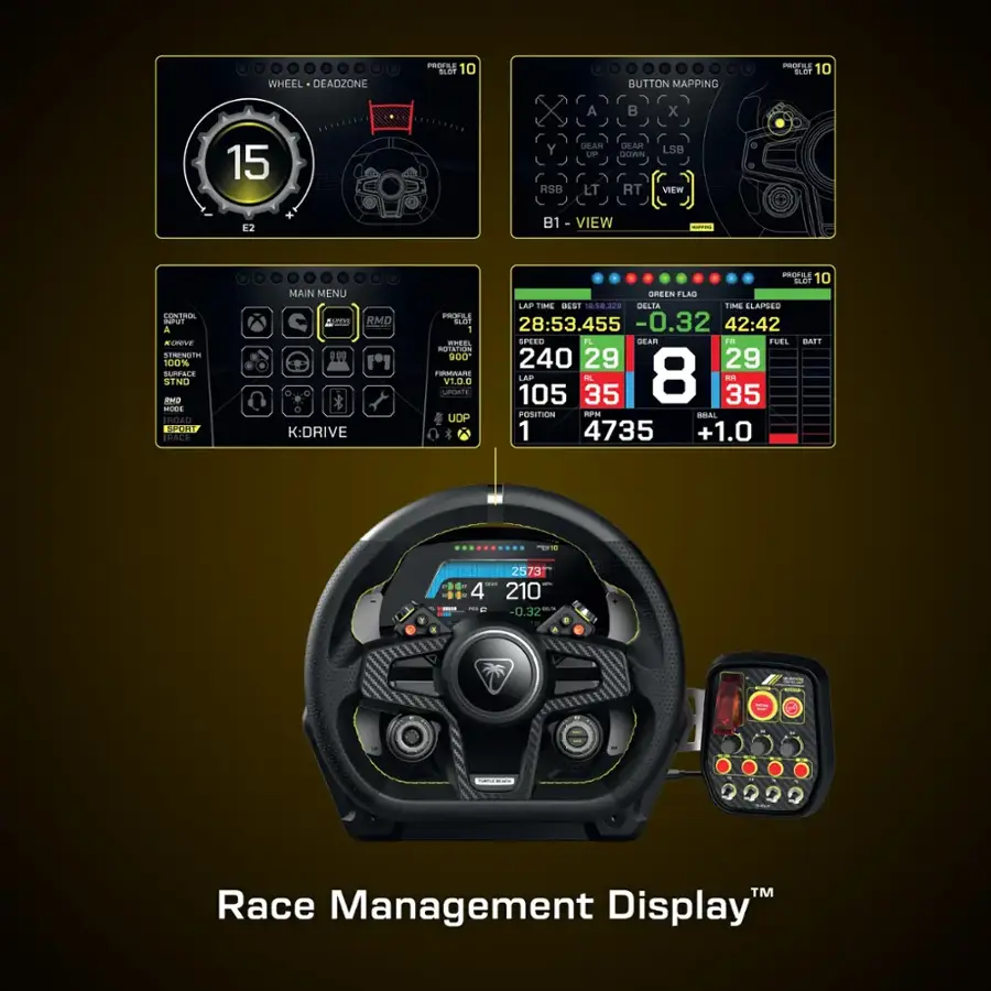 Advanced digital dashboard for real-time race telemetry, full customization, and integration with popular racing titles to maximize immersion and improve performance.